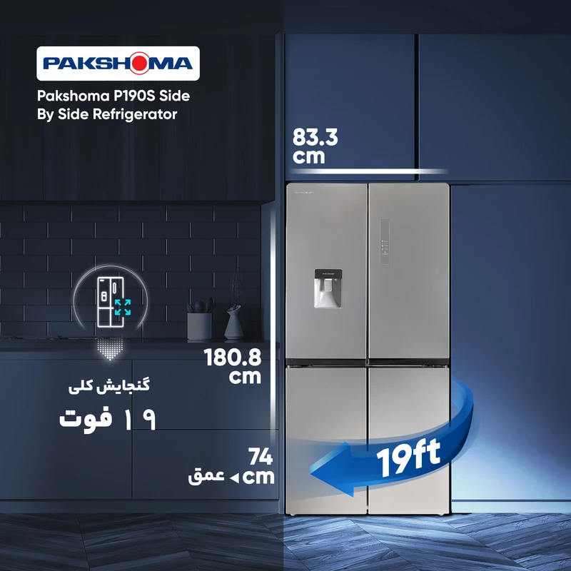 یخچال فریزر ساید بای ساید پاکشوما مدل RDP530 ظرفیت ۱۹ فوت رنگ نقره ای